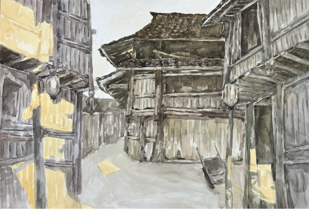 《阴天程阳八寨的房子黑漆漆的,像个卧在躺椅里寂寞的老先生》系列作品 76×54cm 2023年